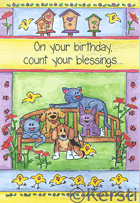 Kersti's artwork is featured here in a few of the many cards available from It takes two. These lighthearted bright cards feature light humor and are mostly birthday, but include a few other occasions, too! |